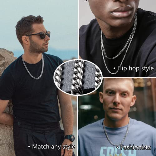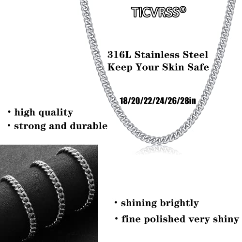 TICVRSS - سلسلة بحلقات كوبية 6 ملم للرجال من تيكفرس، قلادة فضية من الستانلس ستيل للأولاد والنساء، مقاسات 46 و51 و56 و61 و66 و71 سم