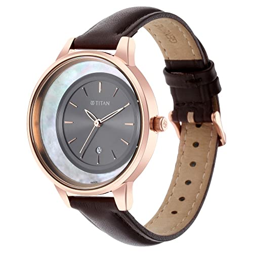 Titan - ساعة يد للنساء من تيتان، نظام حركة كوارتز وعرض أنالوج وسوار جلدي بني - موديل 2648WL04