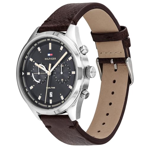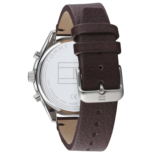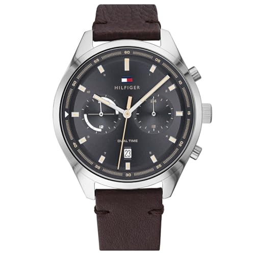 Tommy Hilfiger - تومي هيليفيغر بينيت تناظري بمينا رمادي بسوار بني للرجال