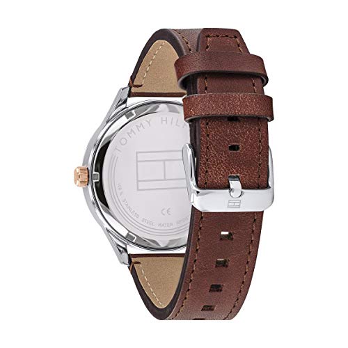 Tommy Hilfiger - ساعة انالوج بعقارب اوتوماتيكية للرجال من تومي هيلفيجر، سوار بني, بني