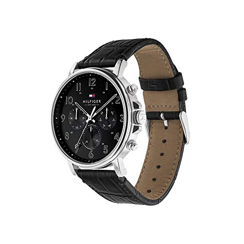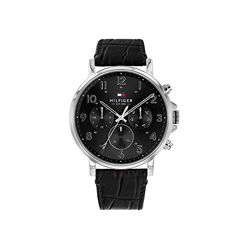 Tommy Hilfiger - ساعة يد دانيال للرجال من تومي هيلفيجر - بمينا اسود وسوار جلد - موديل 1710381