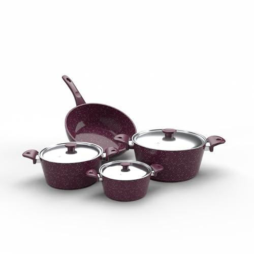 Top Chef - طقم أواني طهي جرانيت من توب شيف، 7 قطع - بورجندي، لا يلتصق