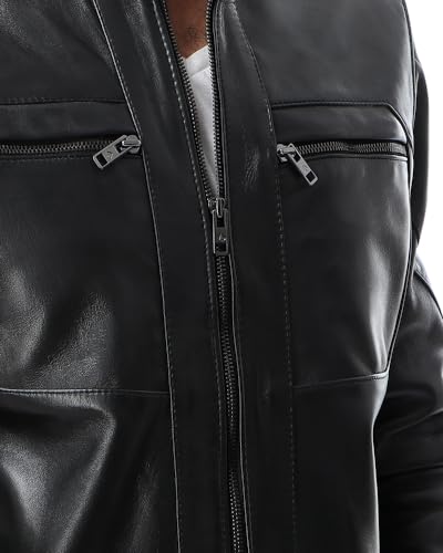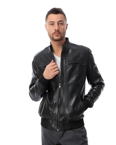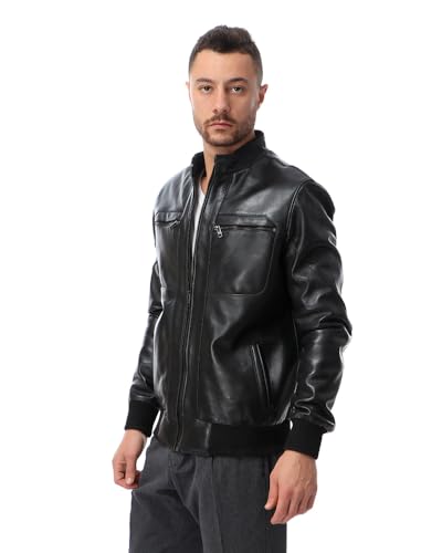 Generic - جاكيت بومبر بياقة قائمة T55 مبطن بجلد طبيعي للرجال من توب ليذر