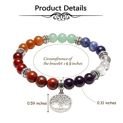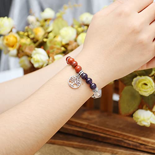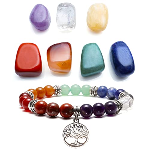 Top Plaza - كريستالات استشفائية وعلاجية علاجات ريكي من توب بلازا لليوجا بنمط غير منتظم مطلية احجار بحجم راحة اليد اسورة شاكرا العلاجية - 7 قطع شجرة الحياة للنساء