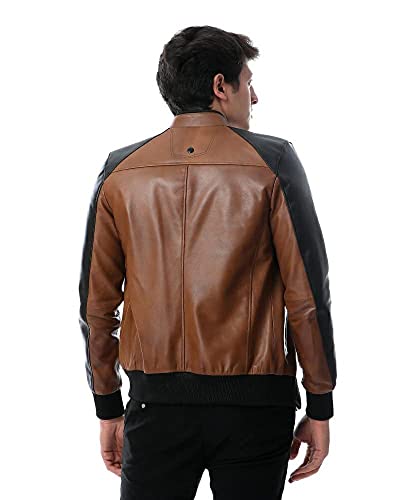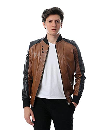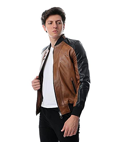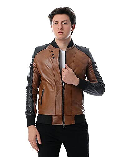 Toplea - جاكيت بتصميم راكبي الدراجات -رجال، بني، 4XL، جلد