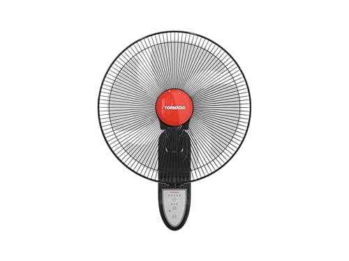 Tornado - مروحة حائط مقاس 16 بوصة بـ4 ريش وريموت من تورنيدو، أسود، EPS-16R
