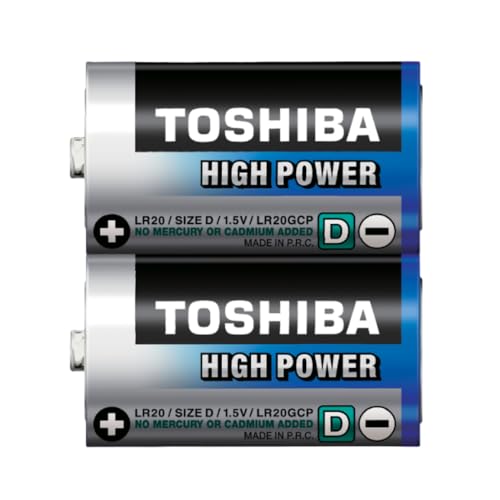 TOSHIBA - بطاريات LR20GCP BP-2 عالية الطاقة نوع D قلوية، 1.5 فولت من توشيبا، قطعتين