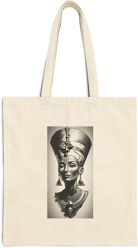 Generic - Tote Bag - حقيبة قماشية بسوسته بتصميم بورتريه كلاسيكي باللونين الأبيض والأسود للملكة نفرتيتي - شنطة كتف قطنية فاخرة لهدايا التراث والأناقة، أبيض كريمي متين وعصري. 34