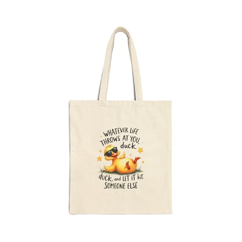 Generic - شنطة يد كبيرة توت - شنطة قماش بسحاب بلون بيج دع الحياة تذهب من قبلك مثل البطة! - شنطة يد كبيرة توت من قماش قطني صديق للبيئة - مهما كانت الحياة ترميه عليك، تصميم بطة مع سحاب - 765