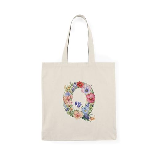 Generic - Tote Bag - شنطة قماش بسوستة – تصميم حرف Q مزين بالورود والأزهار – شنطة خروج وتسوق مطبوعة – خفيفة ومتينة وصديقة للبيئة مناسبة للهدايا والجامعة