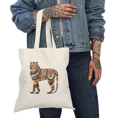 Generic - شنطة يد كبيرة توت قماشية بسحاب - شنطة قماشية بتصميم نمر فرعوني - صديقة للبيئة وأنيقة ومتينة، مثالية للاستخدام اليومي والهدايا - شنطة توتس بتصميم نمر مصري - قماش صديق للبيئة - 198