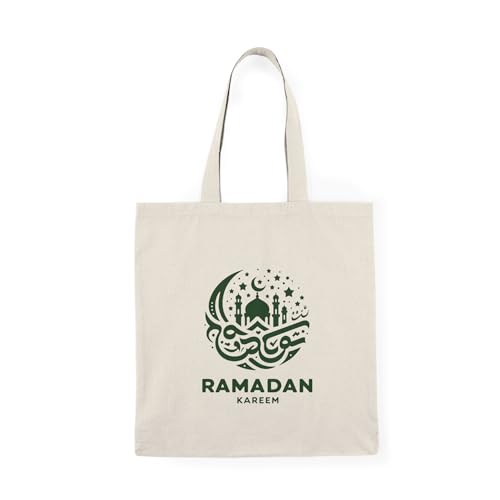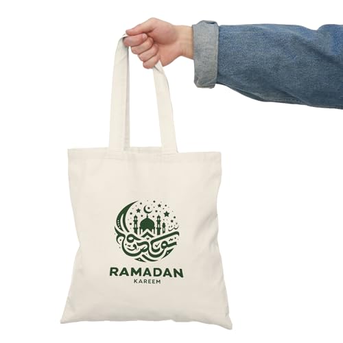 Generic - Tote Bag - شنطة قماش بسوستة – "رمضان كريم" بتصميم الخط العربي والمساجد هدية لشهر رمضان – شنطة خروج وتسوق مطبوعة – خفيفة ومتينة وصديقة للبيئة مناسبة للهدايا والجامعة