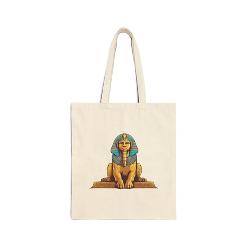 Generic - Tote Bag - حقيبة قماشية بسوسته بتصاميم مصرية فرعونية (أبوالهول، نفرتيتي، توت عنخ آمون) وحروف أبجدية، كانفاس متين