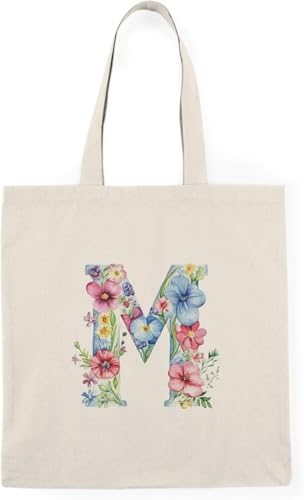 Generic - شنطة توت - شنطة قماش بسوستة - تصميم حرف M مزين بالورود والازهار – شنطة خروج وتسوق مطبوعة – خفيفة ومتينة وصديقة للبيئة مناسبة للهدايا والجامعة 30