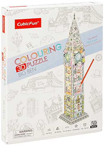 Toys - بازل تلوين ساعة بيج بن ثلاثي الابعاد للجنسين من كيوبك فن - 59 قطعة، بلاستيك