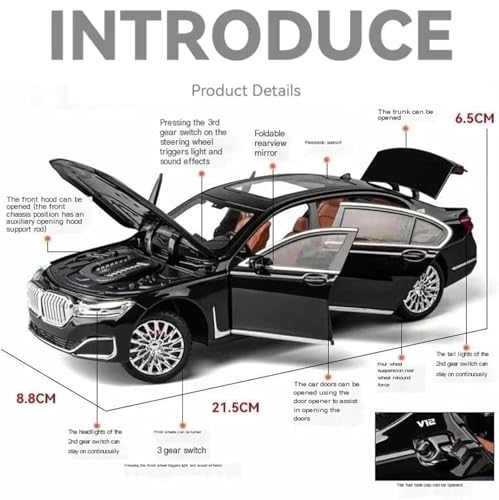 TOYS LAND - نموذج سيارة مصبوبة بمقياس 1:24 مستوحى من سيارة الفئة السابعة موديل 760 بأبواب معدن قابلة للفتح مع محاكاة صوتية وضوئية، مركبة لعبة من خليط معدن للبالغين والأطفال من الجنسين من تويز لاند (لون أبيض)