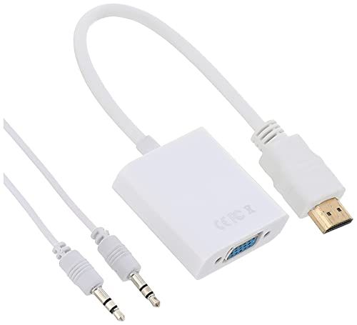 Generic - محول HDMI إلى VGA ذكر إلى أنثى بدقة 1080 بكسل مع صوت للكمبيوتر من تي بي تيك (لون أبيض)