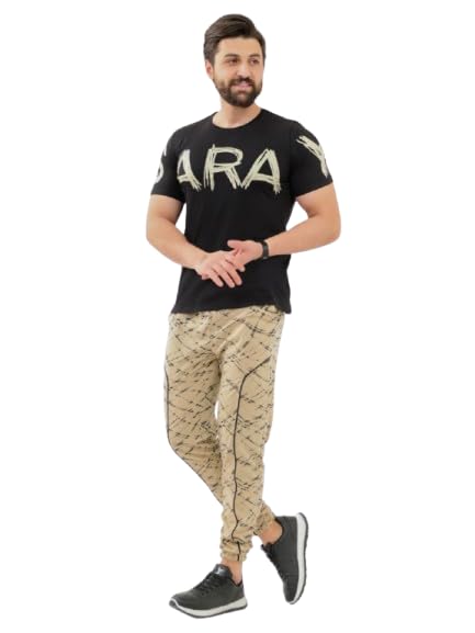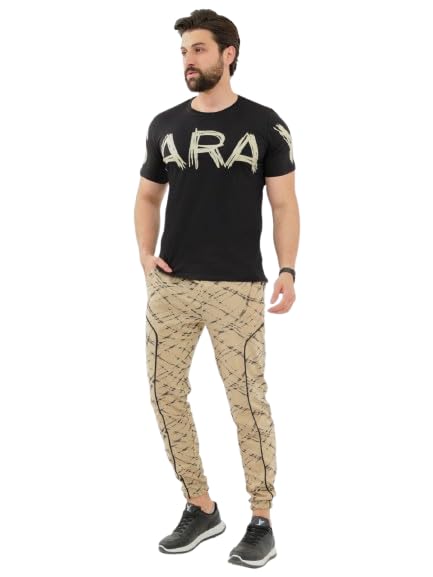 Generic - ترينينج رجالى صيفي- تيشرت قطن ليكرا و بنطلون بيكا مطبوع - مقاس2XL - لون أسود - موديل رقم #: 413-981