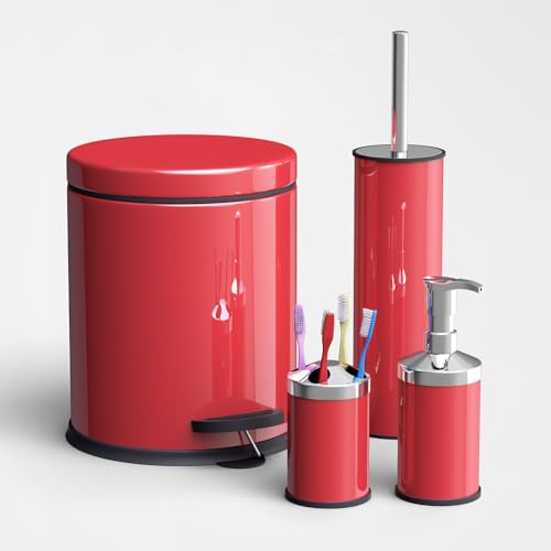 Generic - باسكت قمامة + فرشاة حمام + صبانة + حامل فرشاة اسنان (4, أحمر)