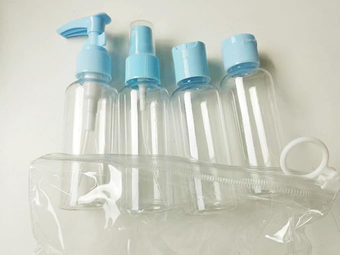 Generic - زجاجات سفر قابلة لإعادة الملء ومضادة للتسرب مع شنطة تخزين شفافة لمستحضرات التجميل والشامبو واللوشن وأدوات النظافة، مجموعة من 4 قطع