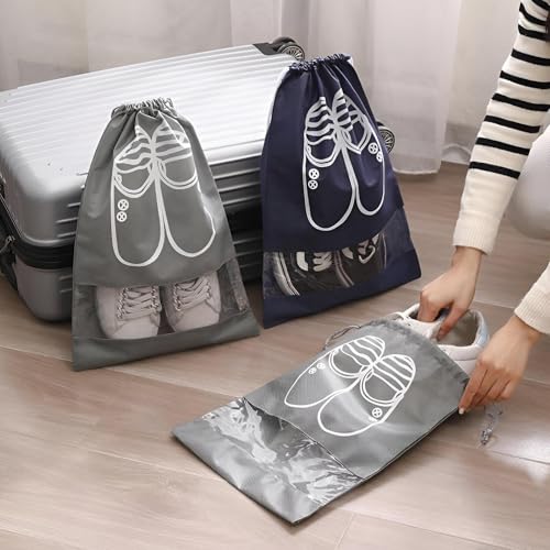 Generic - حوامل احذية مناسبة للسفر - تصميم مبتكر مقاوم للغبار مع رباط ونافذة شفافة، مما يزيد من مساحة حذائك (لون رمادي، قطعة 3)