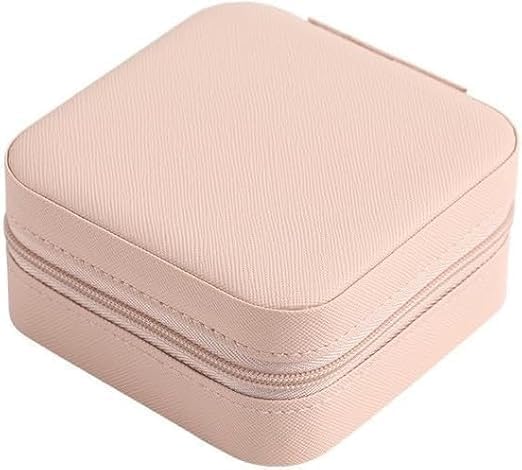 Generic - صندوق مجوهرات للسفر، حافظة مجوهرات صغيرة، تصميم أنيق حامل للخواتم والقلادات (ازرق) (بيج)
