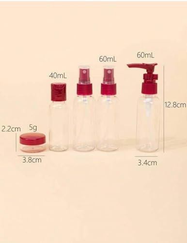 Generic - مجموعة زجاجات مستحضرات التجميل بحجم مناسب للسفر، 5 قطع، علب محمولة مع شنطة سفر شفافة، لون (نبيتي)
