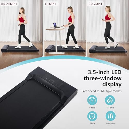 - 【شاشة ال اي دي وجهاز تحكم عن بعد ذكي】جهاز المشي أسفل المكتب مزوّد بشاشة ال اي دي، تتيح لك تتبع السرعة والمسافة والوقت والسعرات الحرارية المحروقة بسهولة وفي الوقت الفعلي. يمكنك استخدام جهاز التحكم عن بُعد لتغيير السرعة أو إيقاف جهاز المشي.