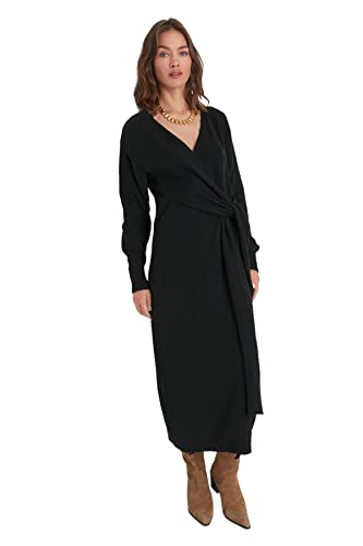 Trendyol - ترنديول فستان تريكو برباط مزدوج الصدر بلون رمادي TWOAW21EL0260