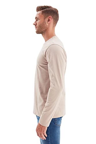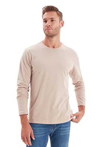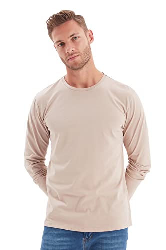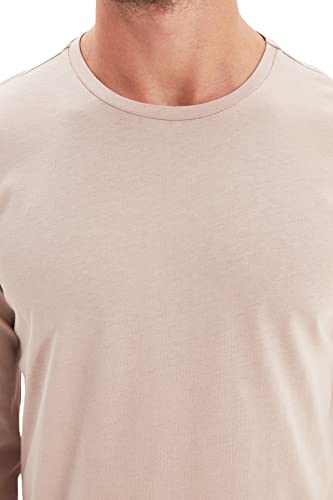 Trendyol - تيشرت أساسي بقصة عادية ورقبة مستديرة وأكمام طويلة من القطن 100% للرجال من تريندي اول، موديل TMNAW21TS0208 - عبوة من قطعة واحدة