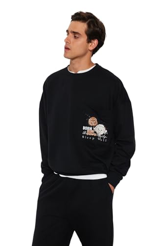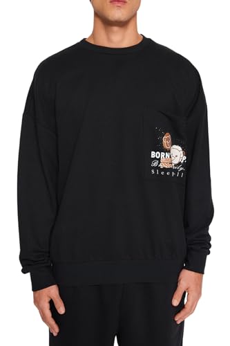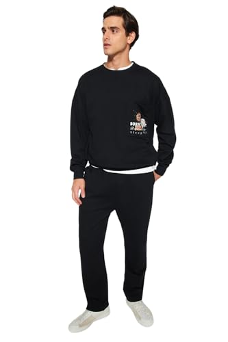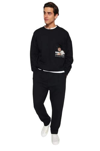 Trendyol - بيجامة مطبوعة TMNAW24PT00045 ومنسوجة بقصة عادية للرجال من ترنديول، لون أسود