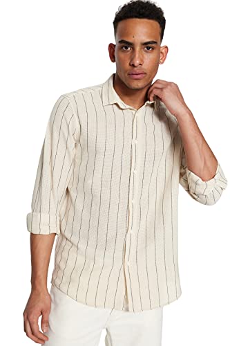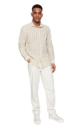 Trendyol - قميص منسوج مخطط بقصة عادية للرجال طراز TMNSS23GO00085 من ترنديول، لون أسود (عبوة من قطعة واحدة)
