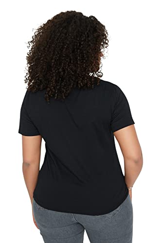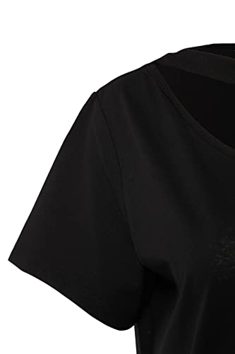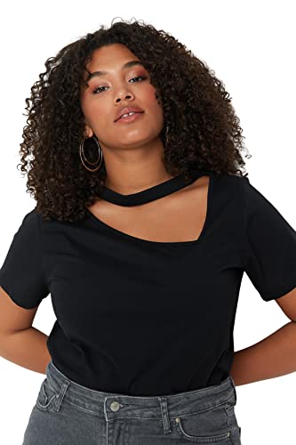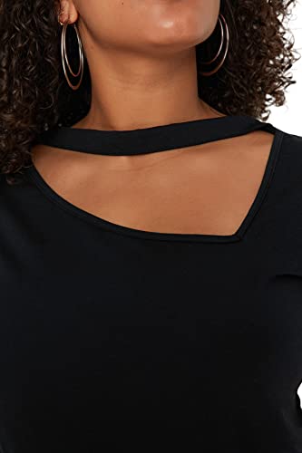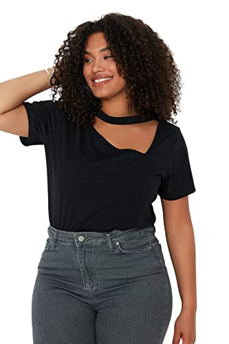 Trendyol - ترنديول تي شيرت محبوك للنساء مصنوع من القطن بنسبة 100% مزين بنافذة/مقصوصة بلون اسود مقاس كبير TBBSS22BF00001