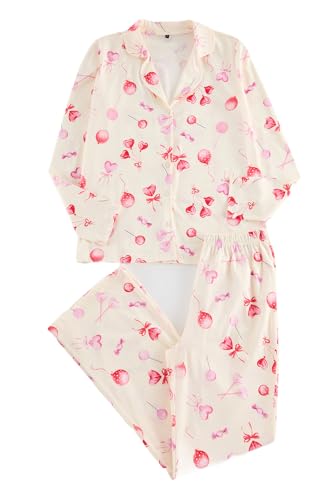 Trendyol - طقم بيجامة منسوجة بتصميم شكل قلب من القطن بنسبة 100% للنساء من ترنديول، بيج اكرو، THMAW25PT00141
