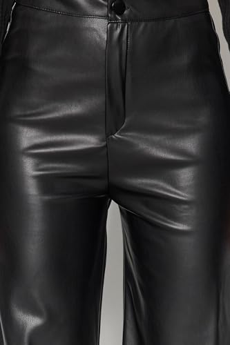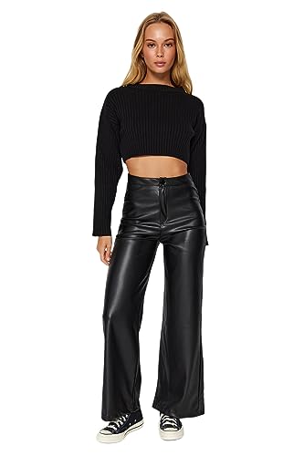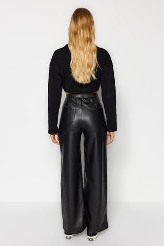 Trendyol - بنطلون منسوج للنساء من الجلد الصناعي بجيوب واسعة الساق طراز TWOAW24PL00103 من ترنديول