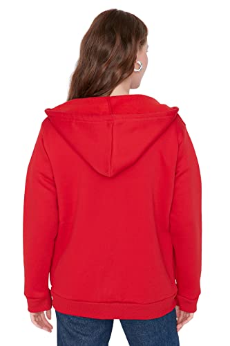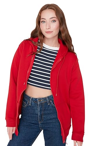 Trendyol - سويت شيرت من الصوف الناعم من ترنديول، سميك بغطاء للرأس مقاس كبير وقصة واسعة وسوستة للنساء TWOAW21SW0840
