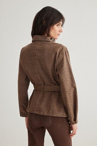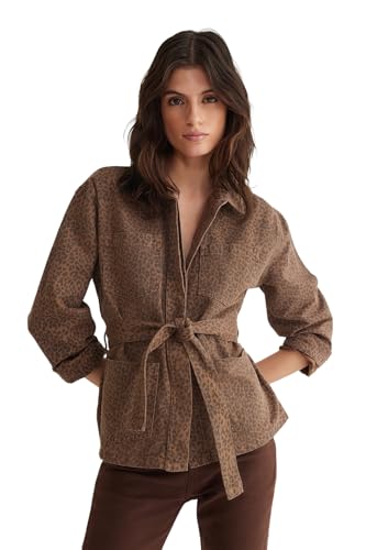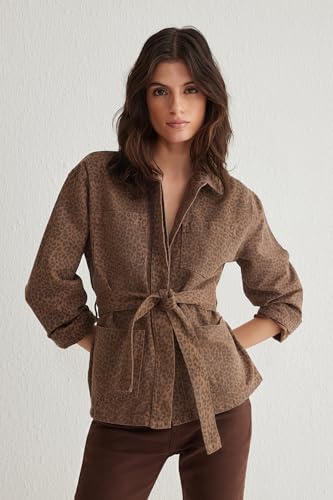 Trendyol - جاكيت جينز للنساء متعدد الألوان بنمط جلد الفهد وحزام بني طراز TWOSS25CE00027 من ترنديول