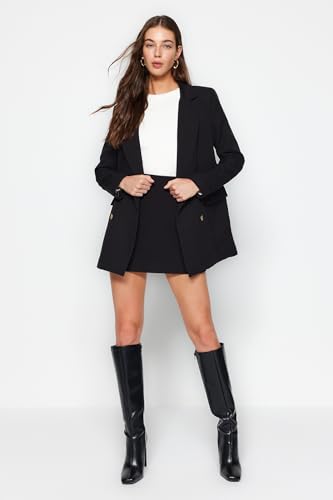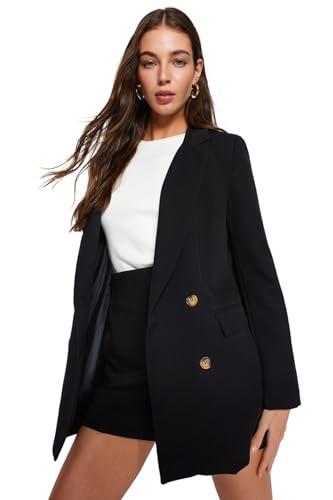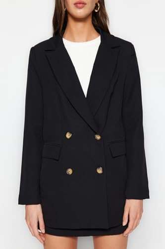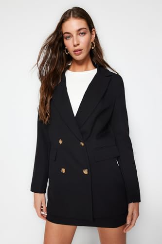Trendyol - جاكيت بليزر مبطن من نسيج محبوك بقصة واسعة بأزرار للنساء من ترينديول، لون أسود، TWOAW22CE0167