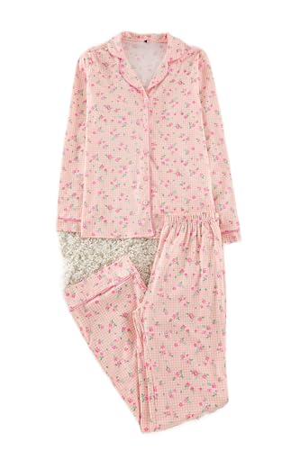 Trendyol - طقم بيجامة منسوجة بتصميم زهور من القطن بنسبة 100% للنساء من ترنديول، لون وردي، طراز THMAW25PT00202