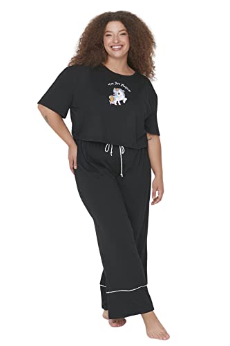 Trendyol - ترنديول طقم بيجامة للنساء مقاس كبير TBBAW23AI00040 (عبوة من قطعتين)