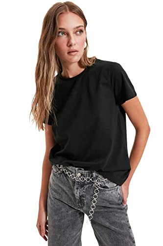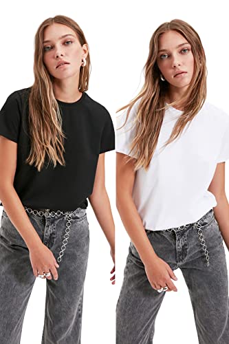 Trendyol - Trendyol Women 2-Pack 100% Cotton Single Jersey Crew Neck Knitted T-Shirt TWOSS20TS0141 T-Shirt (pack of 1)