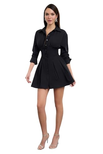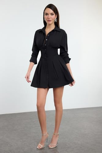 Trendyol - فستان كورسيه بتفاصيل من البوبلين TPRAW25EL00108 للنساء من تريندول، لون أسود