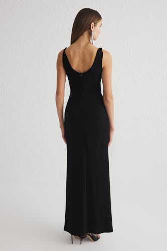 Trendyol - ترنديول فستان سهرة طويل انيق محبوك بصف ازرار مزدوج للنساء TPRSS25AE00025 فستان سهرة وحفلات التخرج بلون اسود