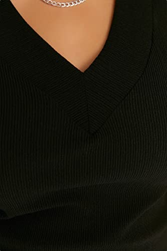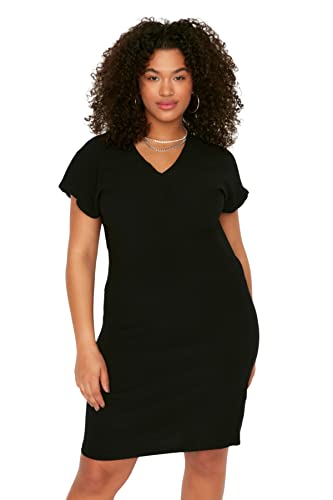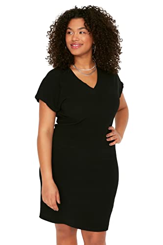 Trendyol - ترنديول فستان محبوك بقصة مستقيمة للنساء بلون اسود مقاس كبير TBBSS22EL2365
