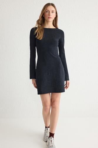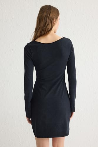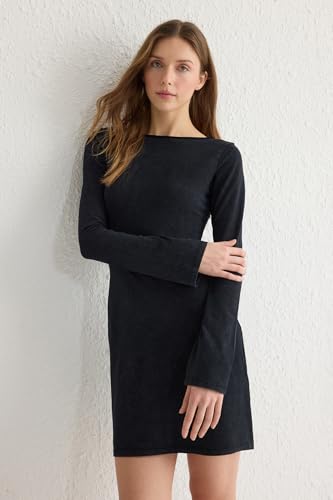 Trendyol - ترنديول فستان قصير محبوك للنساء بلون اسود باهت ومفتوح عند الخصر TWOSS25EL00066