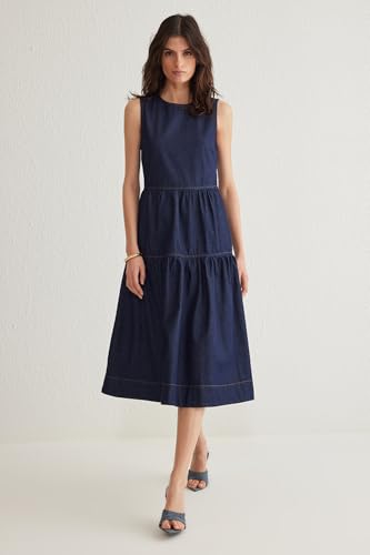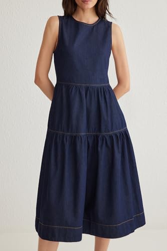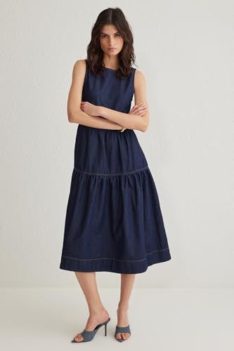 Trendyol - فستان جينز موديل TWOSS25EL00007 طويل مكشكش للنساء من ترنديول، لون أزرق