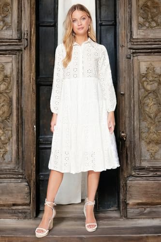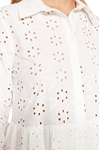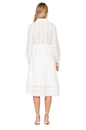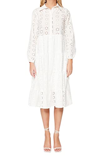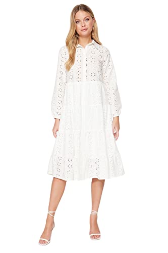 Trendyol - ترنديول فستان قميص منسوج متوسط الطول مطرز بلون بيج فاتح TWOSS23EL01024