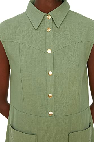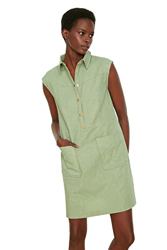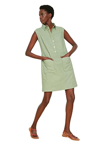 Trendyol - ترنديول فستان قصير منسوج بقصة مستقيمة وقصة مستقيمة وياقة قميص من الكتان للنساء TWOSS22EL1068