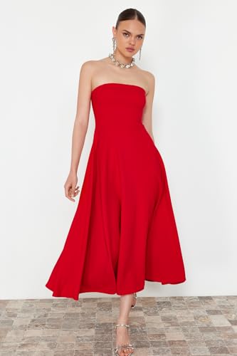 Trendyol - فستان سهرة أنيق منسوج بقصة ايه للنساء من ترنديول، لون أحمر، TPRSS24EL00139