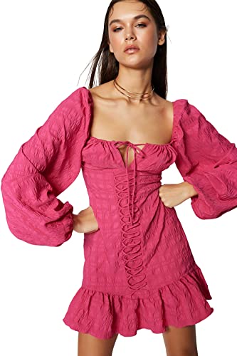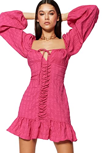 Trendyol - ترنديول فستان قصير ضيق منسوج بقصة عادية للنساء